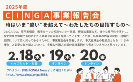 | 2022.06.05 | 2021年度CINGA自主事業報告書ー外国人から相談を受けたとき、 あなたはどのように対応しますか? | DOWNLOAD |