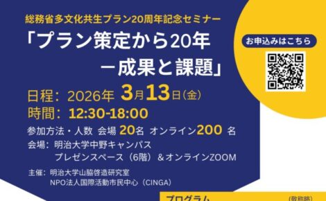 CINGA (Citizen's Network for Global Activities) is an NPO that emphasizes on mutually respecting every person on the earth, via a connection and various human networks to diverse voluntary people in order to firmly take root of matured multi-cultural society in Japan.