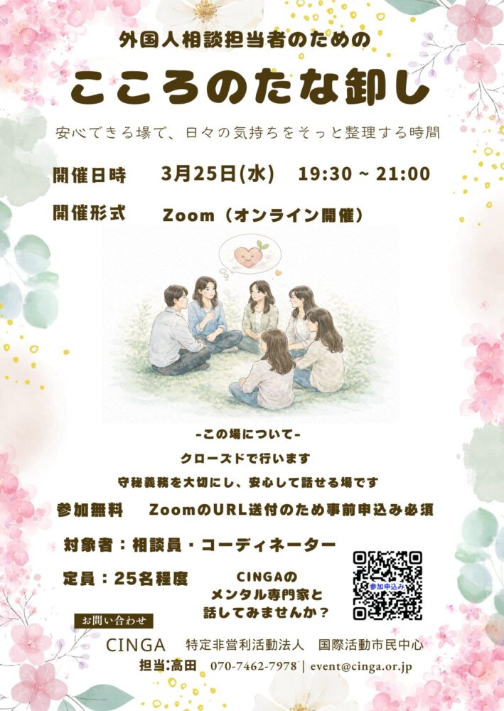 3/25(水)|外国人相談担当者のためのこころのたな卸し