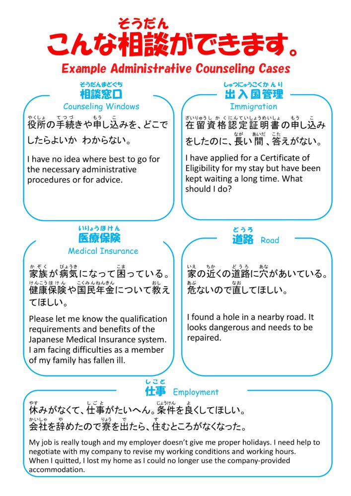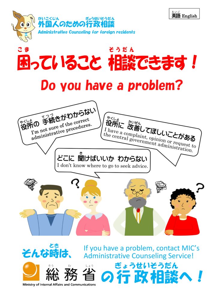 24. 外国人のための行政相談 2025.10.24 各省庁からのお知らせ外国人向け情報 チラシの拡大版はこちら 多言語に対応しています!英語、中国語、韓国語、スペイン語、ポルトガル語、ベトナム語、ネパール語、タイ語、インドネシア語、ミャンマー語、クメール語(カンボジア語)、モンゴル語、トルコ語、ウクライナ語、フランス語、マレー語、タガログ語 総務省ウェブサイトより 言語をクリックいただくと、各国語版の生活・就労ガイドブックをダウンロードできます。多言語版はこちら