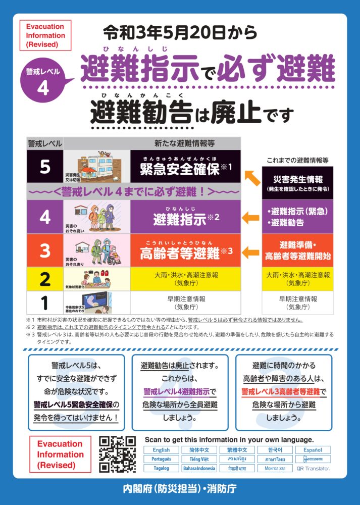 20. 令和3年5月20日から 避難指示で必ず避難 避難勧告は廃止です