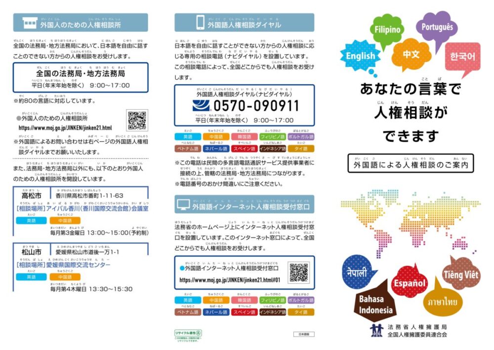18. あなたの言葉で人権相談ができます 外国語による人権相談のご案内