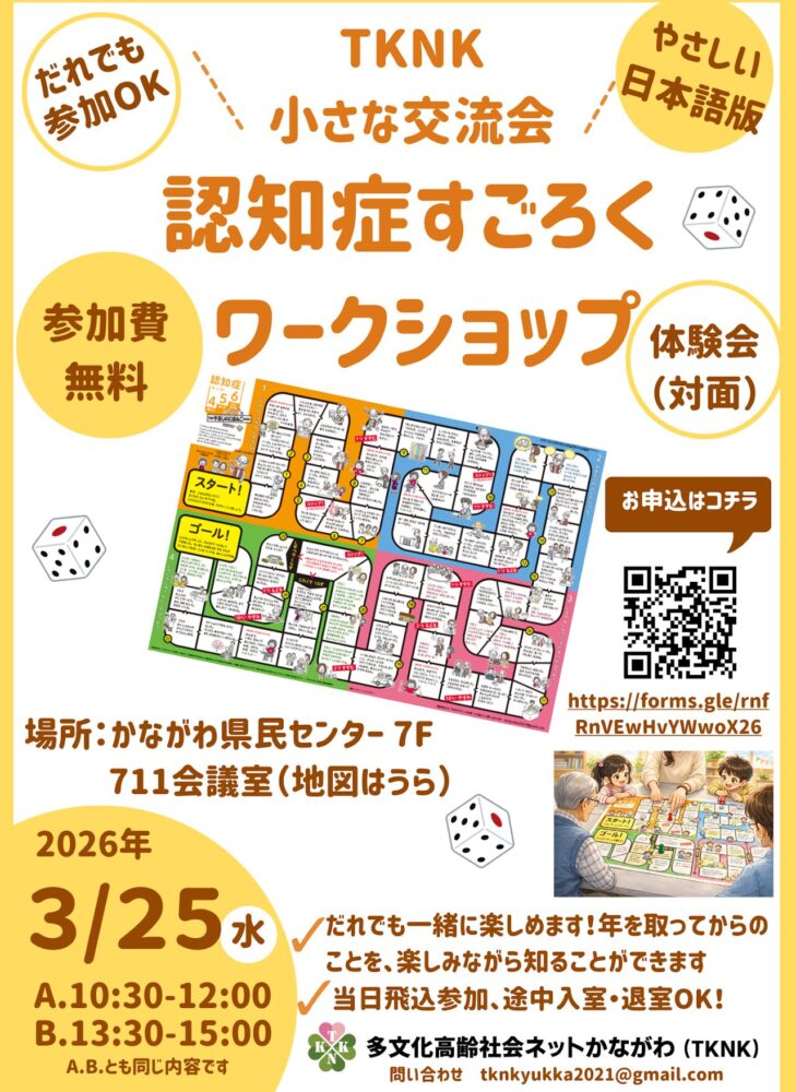 3/25(水) 対面|小さな交流会 TKNKのやさしい日本語認知症456(すごろく)ワークショップ