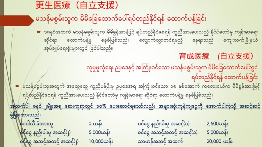 医療 2022.05.03 様々な医療制度 社会福祉法に基づいて無料低額診療事業 血漿交換 ステロイドパルス療法 結核病 他のページへ တစ်ခြားသော ခေါင်းစဉ်များသို့ Myanmar Main Page知っておくとお得する制度情報共同活動妊娠・出産ミャンマーに関する豆知識出版済資料労働法日本国内での活動ミャンマー国内活動YOU TUBE医療有給、有休、年次有給
